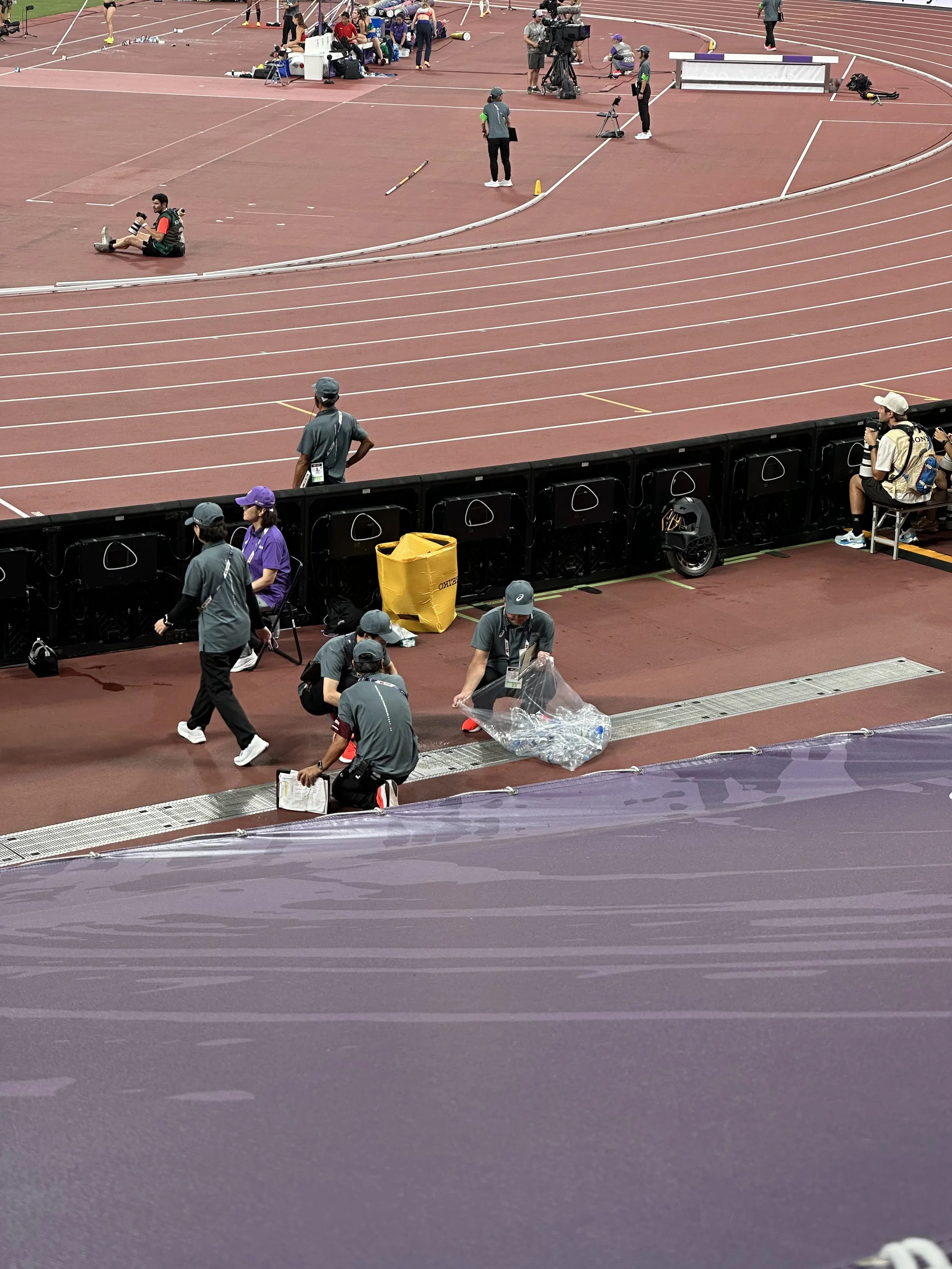 The heat, though, was relentless. As someone who spends professional time thinking about how temperature affects airways and athletic performance, I noticed things I might otherwise have ignored. Misting fans stationed around the stadium precinct. Athletes warming up in ice vests. The sheer volume of water bottles drained trackside after every session after athletes taking a sip before the race.